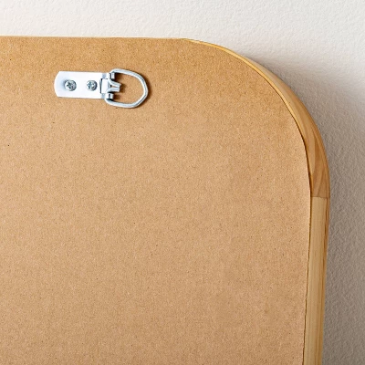 Make any room look more spacious with this 71″ Standing Wood Framed Mirror Natural from Hearth & Hand™ with Magnolia. This rectangular standing mirror brings decorative style and function to your indoor space. It features a deep wood frame for dimensional style. The recessed glass center creates the illusion of extra space, while the natural color coordinates easily with existing decor. This full-length mirror comes with anti-tip anchoring hardware for easy hanging.