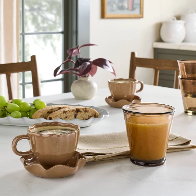 Raise a toast in style with this Short Pint Glass from Hearth & Hand™ with Magnolia. Made of 100% recycled glass, this short glass is designed in a brown hue that makes the drinks look appealing. With a capacity of 7 fluid ounces, this pint glass is ideal for serving refreshing mocktails, beers and mixed drinks.