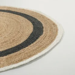 Round 5' Double Stripe Braided Jute Area Rug Charcoal/Tan – Hearth & Handâ„¢ With Magnolia